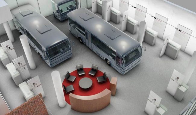 Dreidimensionale Raumwelten mit Exponaten und Installationen.