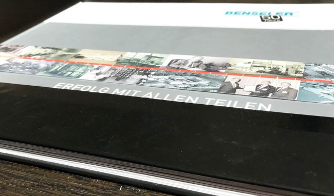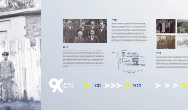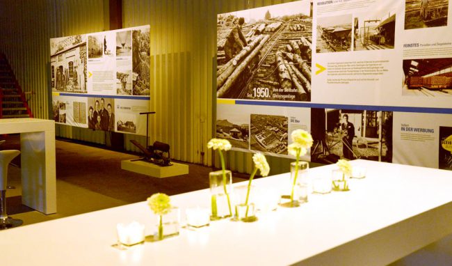 Zweidimensionale Objekte wie Ausstellung, Buch und Firmenchronik